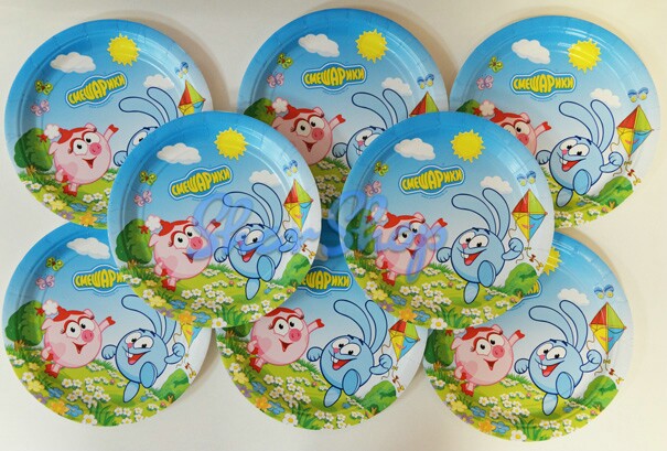 Тарелки бумажные 17 см, 8 шт. Смешарики, в ассортименте