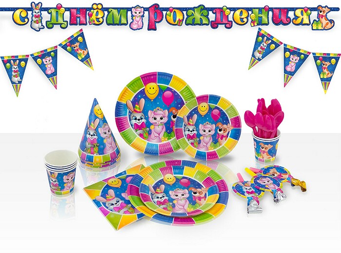 Тарелки бумажные 180 мм, 6 шт. Милые зверята