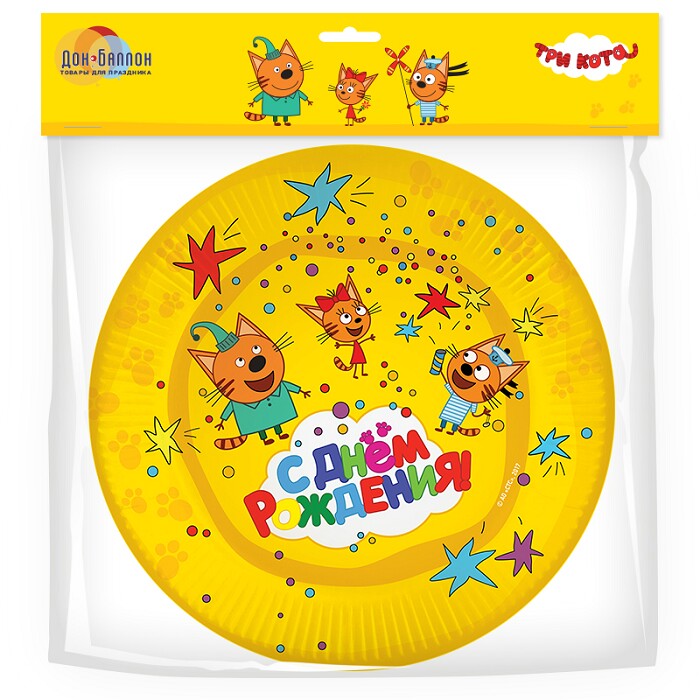 Тарелки бумажные 180 мм, 6 шт. Три Кота