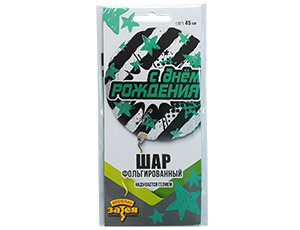 Шар фольга 18''/ВЗ круг С Днем Рождения Полосы и звезды бирюзовые