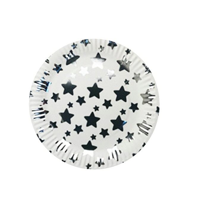 Тарелки бумажные 180 мм, 6 шт. Звёзды серебряные