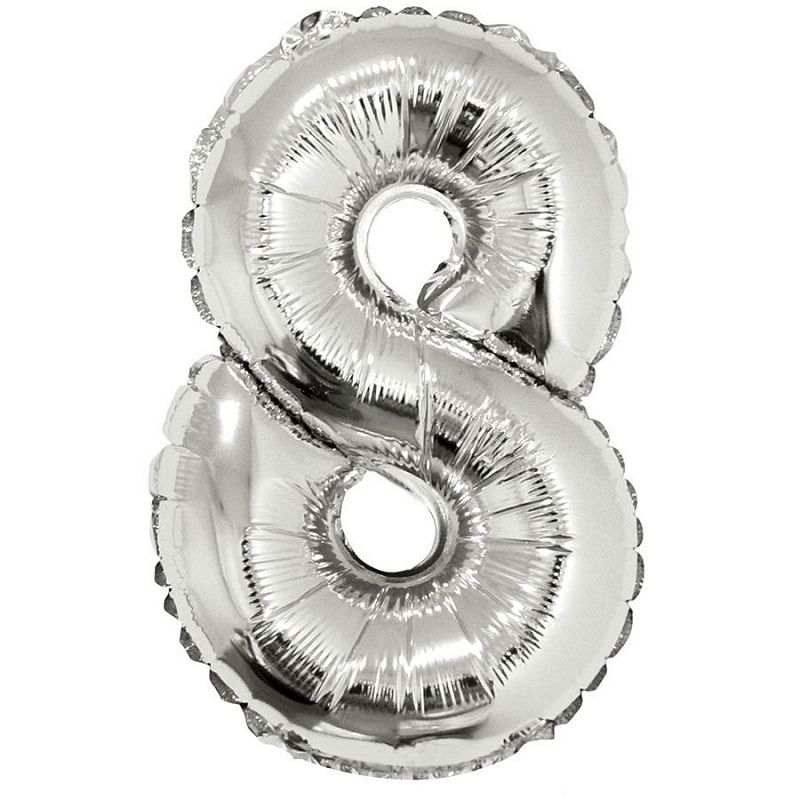 Шар фольга Цифра 16"/ВС Серебро "8" упак.