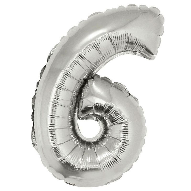 Шар фольга Цифра 16"/ВС Серебро "6" упак.