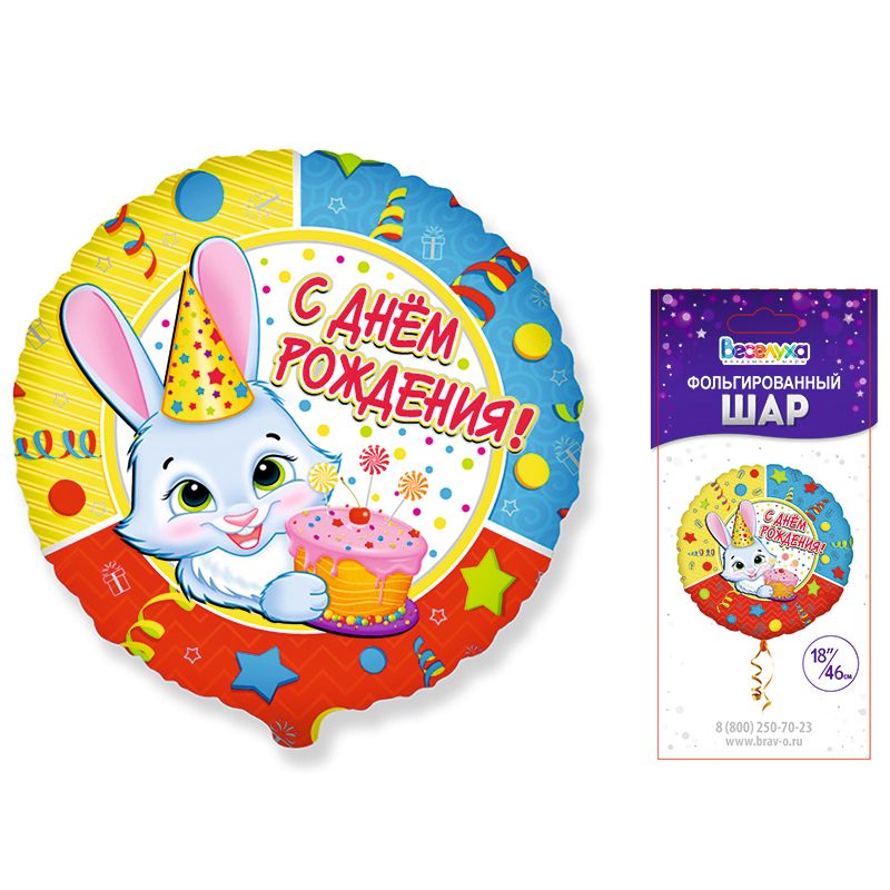 Шар фольга 18''/BR круг С Днем Рождения Зайчик