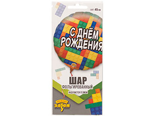 Шар фольга 18''/ВЗ круг С Днем Рождения Конструктор