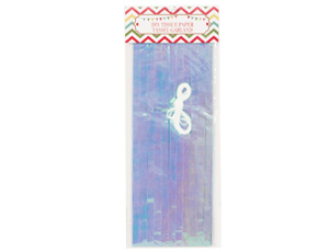 В комплекте: 10 прозрачных перламутровых кисточек, 10 бирюзовых бумажных кисточек, лента 3 м, зажимы.