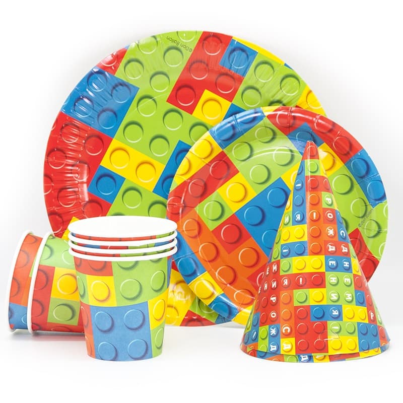 Тарелки бумажные 180мм Конструктор Разноцветный уп6 ВолВес