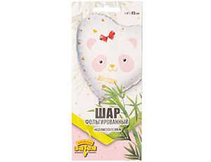 Шар фольга 18''/ВЗ сердце С Днем Рождения Панда с бантиком