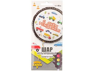 Шар фольга 18''/ВЗ круг С Днем Рождения Машинки