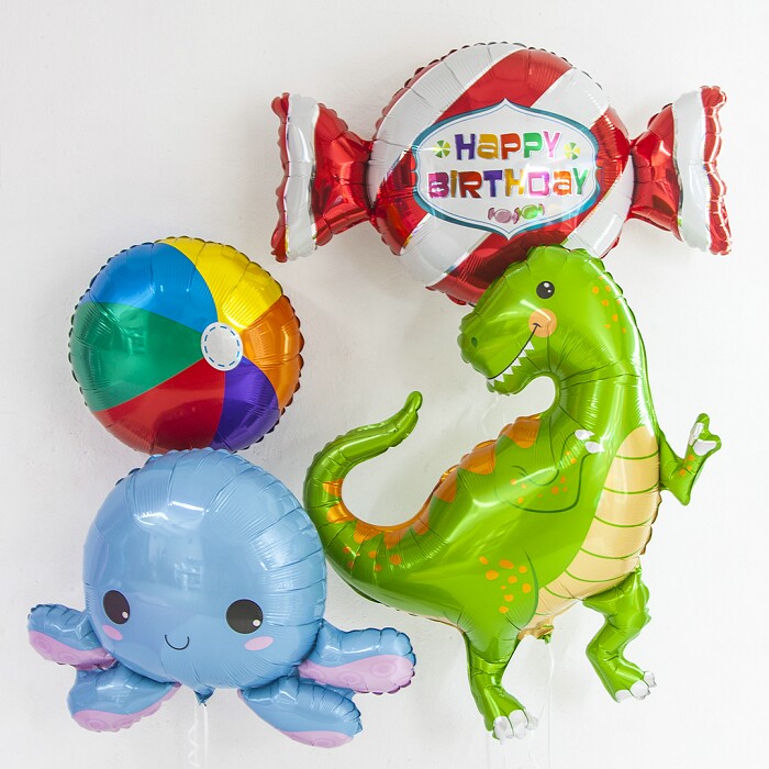 Фольгированный шар в виде фигуры для украшения праздника, приспособлен под гелий. Фольгированные воздушные шары изготавливаются из тонкой миларовой пленки, позволяющей шару не сдуваться в течение нескольких дней. Фольгированные воздушные шары надувают через клапан. Поэтому плотно надутый шар завязывать не требуется - обратный клапан хорошо удерживает гелий внутри шара. К шару привязывают ленту только для того, чтобы шар не улетел. Сдувшийся фольгированный шар можно поддуть гелием или воздухом и он всегда будет иметь товарный вид.