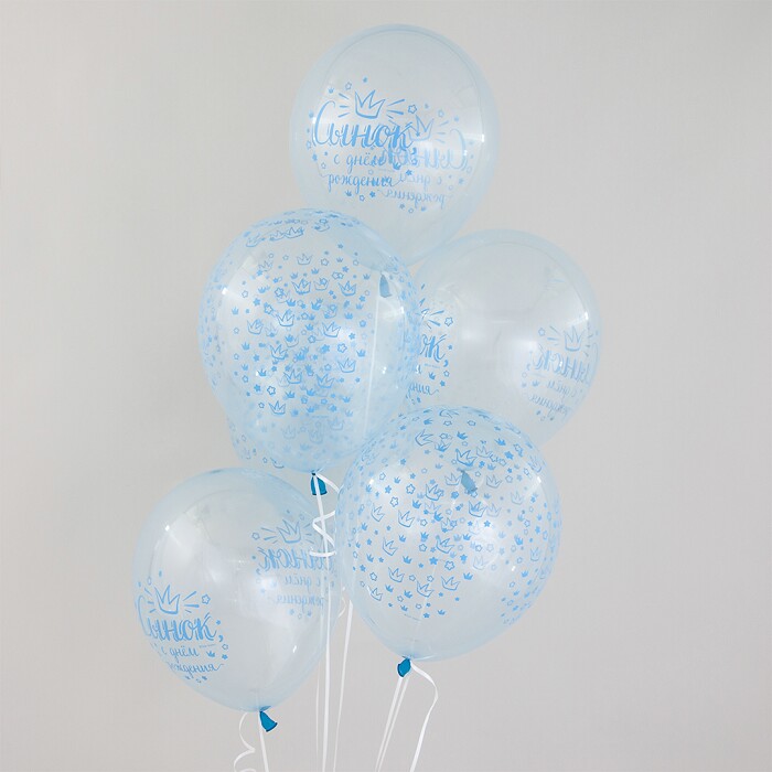 Шар латекс с рисунком 12"/ДБ кристалл СДР Сынок Хрустальные короны Голубой 5ст (25шт)