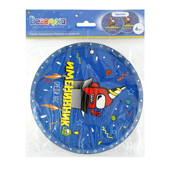 Тарелки бумажные 180мм Геймерская Именинник Среди нас набор (уп6) ВС
