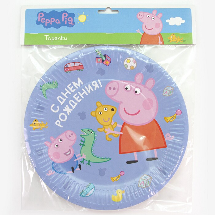 Тарелки бумажные 230мм С ДР Свинка Пеппа голубой уп6 ВолВес