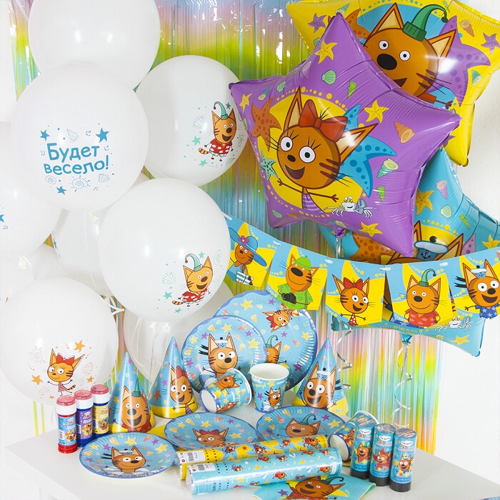 Используя в оформлении товары лицензионной коллекции «Три Кота», Вы сможете оформить знаменательное событие в тематическом стиле любимого мультфильма и его героями.