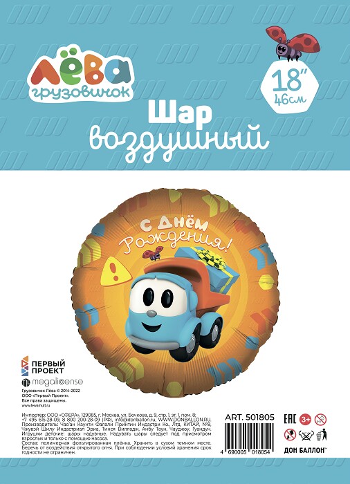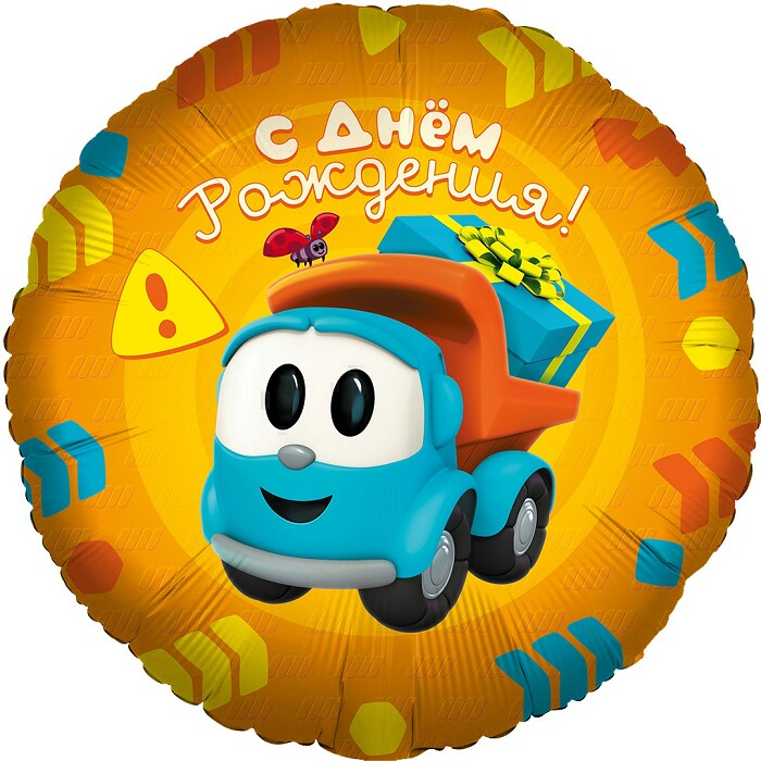 Шар фольга 18''/FL круг Грузовичок Лева С Днем Рождения