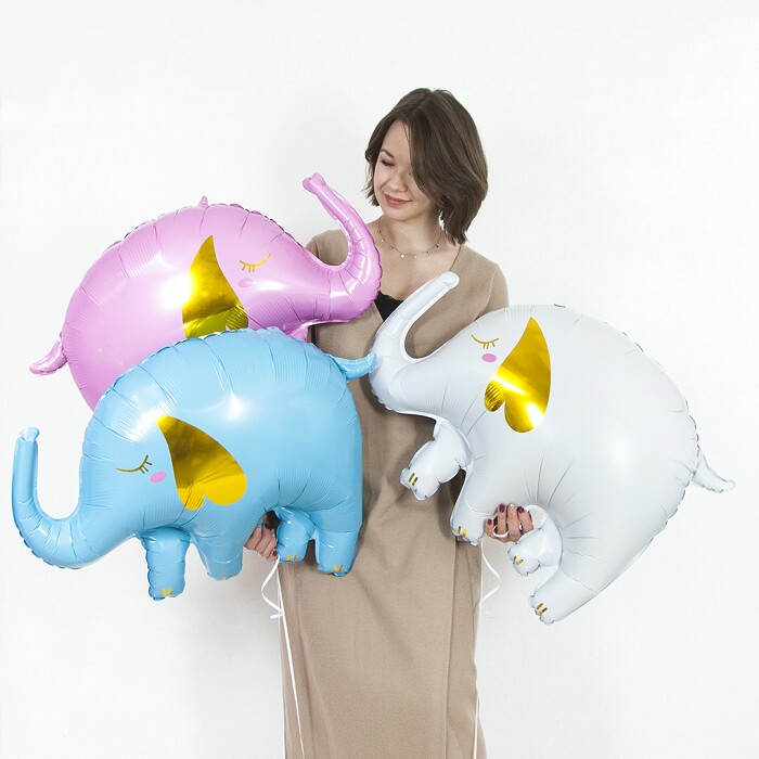 Шар фольга фигура Слоник белый 33'' 84см FL