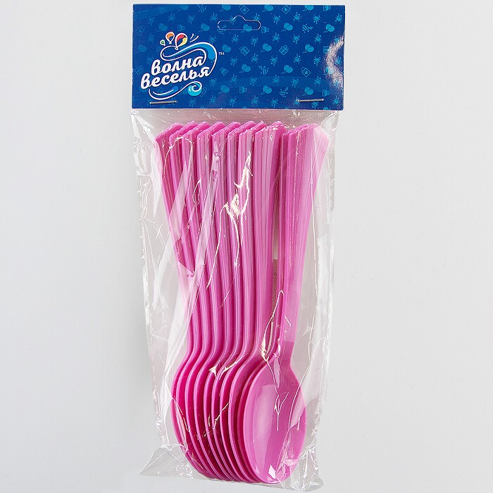 Столовые приборы Ложки пластик Премиум Ярко-розовый 16см уп10