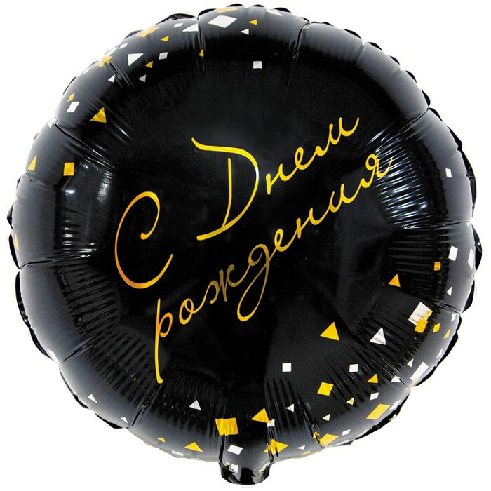 Шар фольга 18''/ВЗ круг С Днем Рождения Конфетти Party черный
