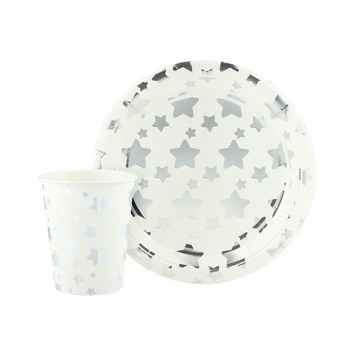 Стаканы бумага 250мл Звезды Микс Белый серебро металлик (уп6)
