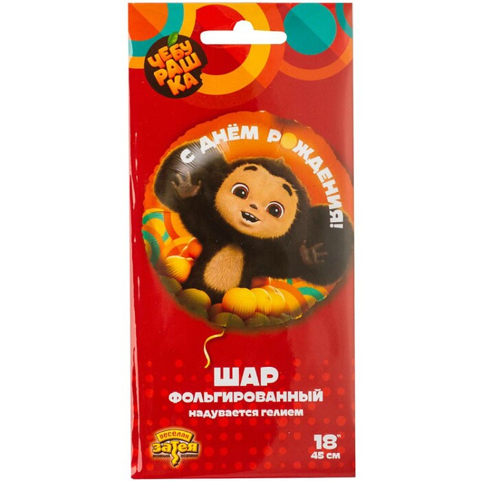 Шар фольга 18''/GR круг С Днем Рождения Чебурашка рус