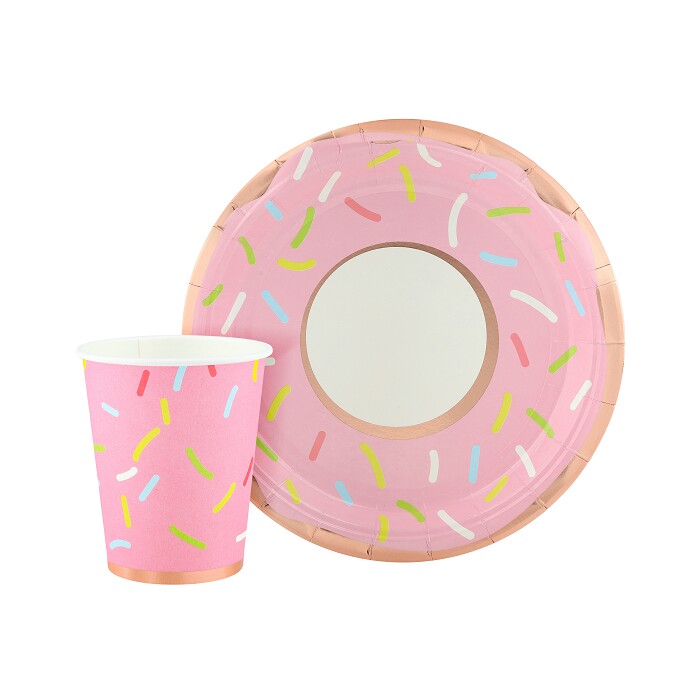 Тарелки бумажные 180мм Сладкий Пончик Белый Розовое золото металлик (уп6) ВолВес