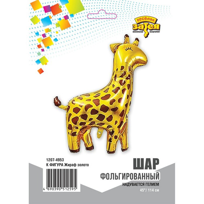 Сложная, объемная фигура в форме веселого обитателя саванны Жирафика создаст настроение праздника не только ребенку, но и гостям! При надувании рекомендуется использовать гелий. Имеет встроенный клапан - что упрощает надувание. Тонкая миларовая (фольга на полиэтиленовой основе) пленка позволяет шарам не сдуваться от недели до одного месяца. Упакован в красочный пакет, с цветным изображением шара, что позволяет выставлять товар в не надутом виде.Размер шара:96x119cm.