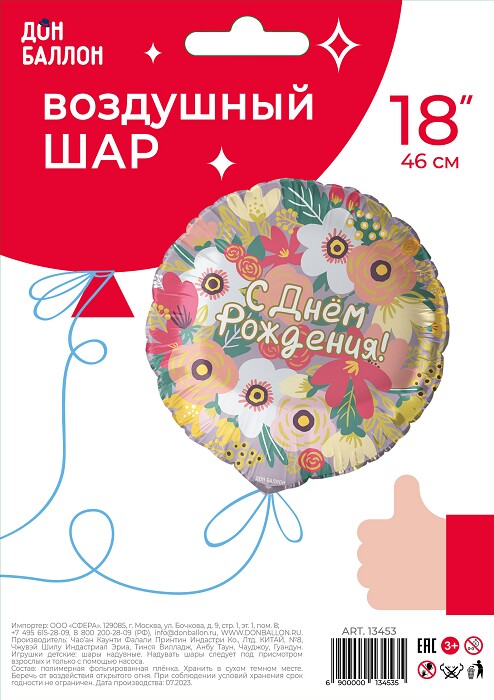 Шар фольга 18''/FL круг С Днем Рождения Цветочный вальс