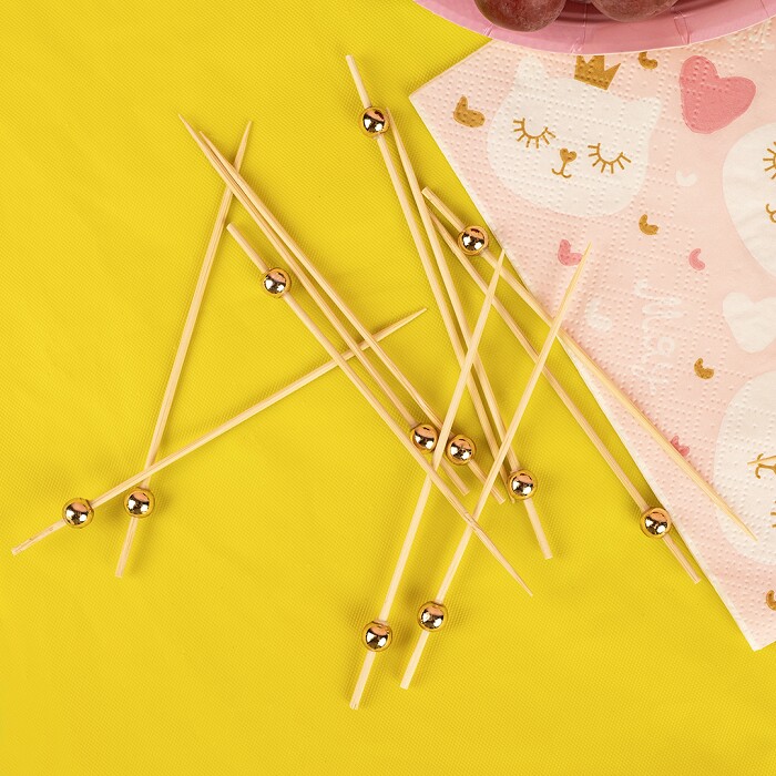 Палочки отлично подойдут для нанизывания на них кусочков мяса, овощей, фруктов и других продуктов, для приготовления канапе, а также помешивания и украшения коктейлей. Незаменимая помощь при создании оригинальных закусок и красивого оформения стола.