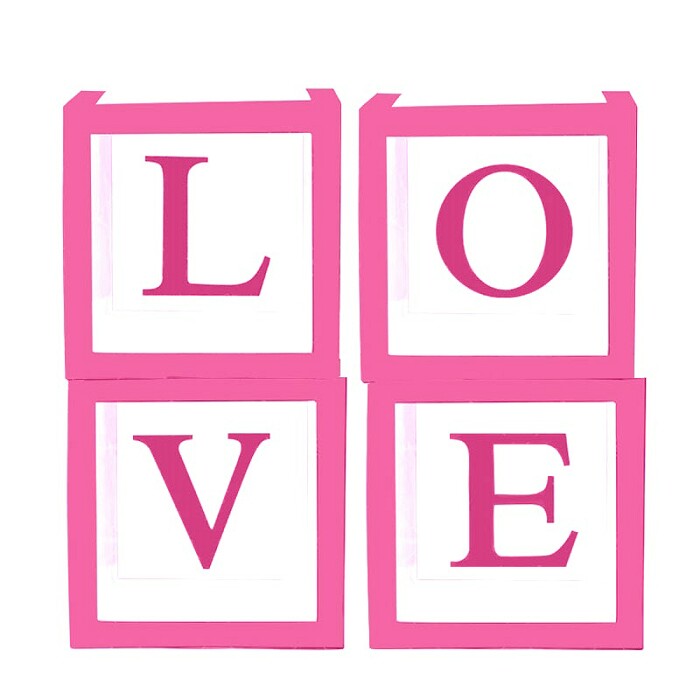 Коробки сюрприз для воздушных шаров 30х30х30см набор Love Розовый упак уп4