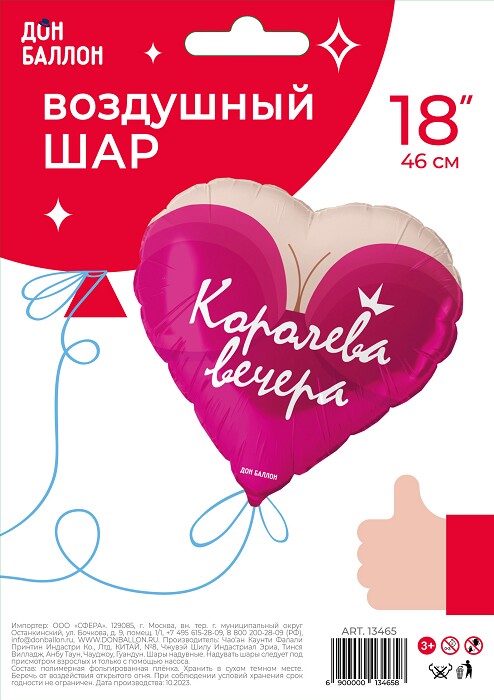 Шар фольга 18''/FL сердце Королева вечера 1шт