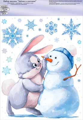 Наклейка для оформления А4 Зайчик и снеговик