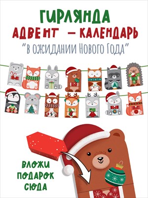 Гирлянда на нити 300см Адвент-календарь В ожидании Нового Года