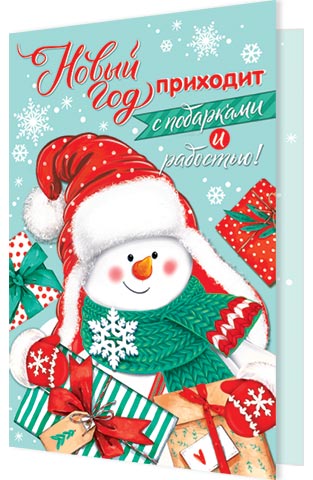 Открытка Новый Год приходит с подарками и радостью