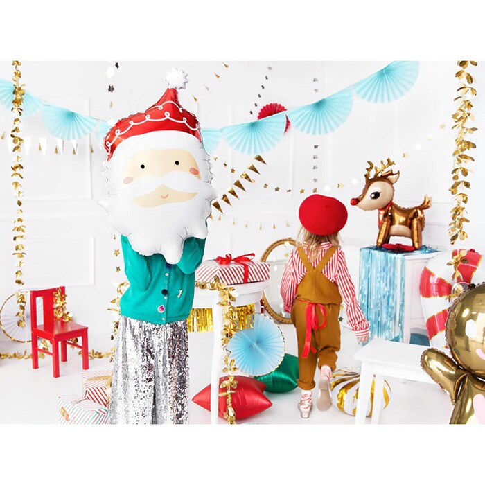 Объемная фигура - голова Санты, может надуваться как гелием, так и воздухом. В верхней части шара имеются специальные отверстия для подвешивания, при надувании воздухом. Размер шара указан в надутом виде.