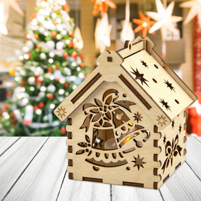 Сборная модель с подсветкой Домик Новогодние колокольчики Дерево 9,5х6,5х6,5см