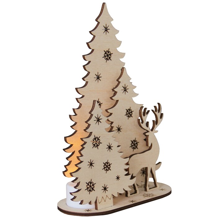 Сборная модель с подсветкой Олень среди елей Дерево 12,2х5,8х17,8см
