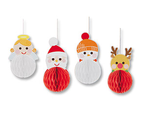 Декоративное украшение интерьера из бумаги. В упаковке 4 объёмных подвесных фигуры с размерами: 7,6*11 см; 6,5*13 см; 6,5*12,6 см; 6,5*12,3 см. Фигуры представлены в сложенном виде. Собрать можно с помощью прилагаемых скрепок.