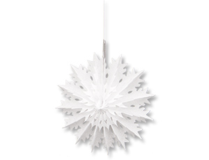 Декоративное украшение интерьера из бумаги. В упаковке 1 объёмная подвесная фигура "Снежинки" (диаметр 45 см, толщина 13,6 см). Фигура в сложенном виде. Собрать "Снежинку" можно с помощью входящих в комплект скрепок.
