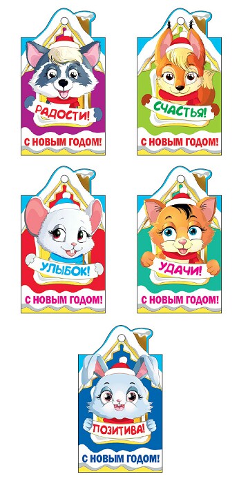 Открытка мини Новогодние зверушки вдомиках (50шт)