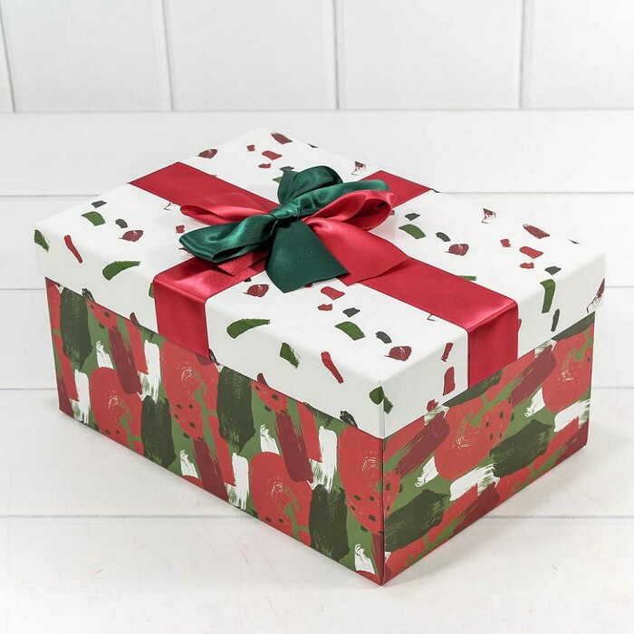 Коробка прямоугольник Двойной бант Красный Зеленый 26х18х12см набор 3 в1