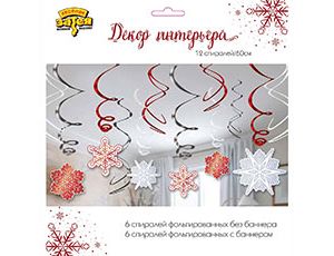 Декорация в виде фольгированных спиралей. В комплекте: 6 спиралей без баннера и 6 спиралей с баннерами-снежинками.
