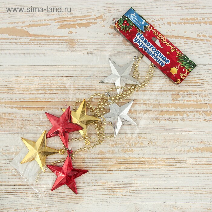 Бусы фигуры Звездочки красные серебро золото 1,0м