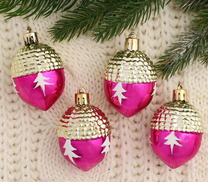 Игрушки на елку фигура Желудь морозные веточки 4,5х5,5см (уп4)