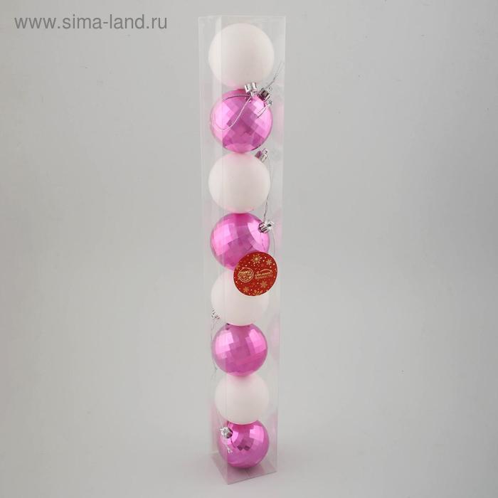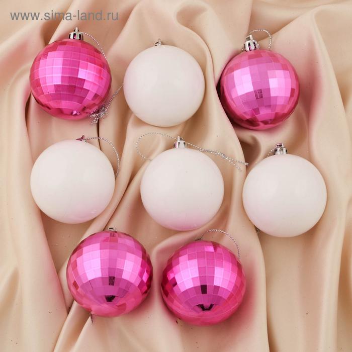 Игрушки на елку Шары 6см Диско глянец розово-белый (уп8)