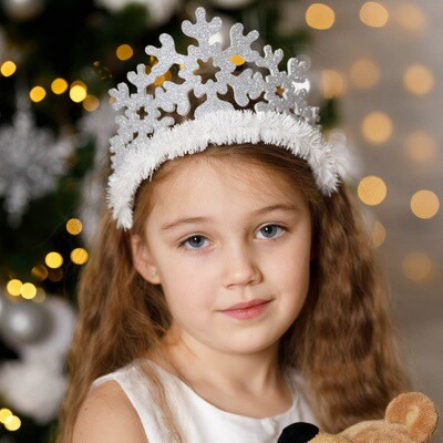 Карнавальный головной убор. Новогодний аксессуар в виде ободка-короны с серебряной, сверкающей, глиттерной снежинкой великолепно дополнит праздничный образ.