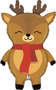 Шар фольга фигура Маленький олень в красном шарфе коричневый 29'' 74см GR