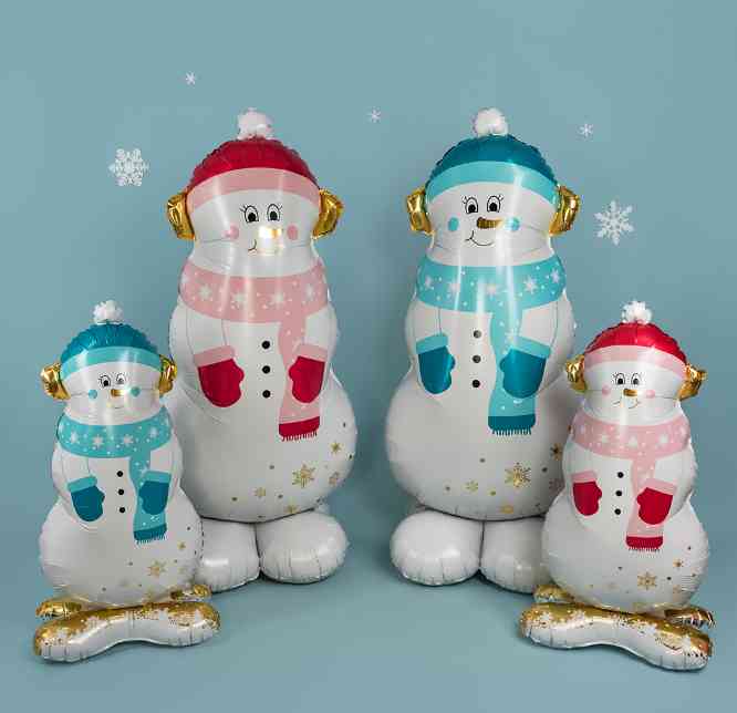 Шар фольга фигура на подставке Снеговик в голубом шарфе 47" 119смFL