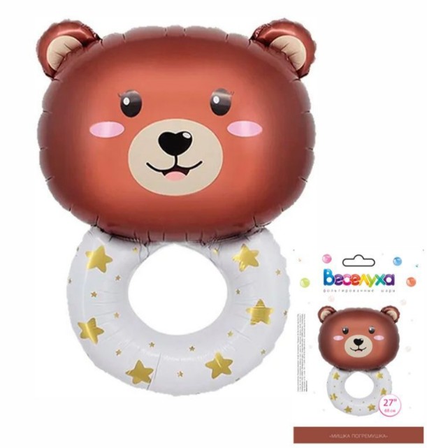 Шар фольга фигура Мишка погремушка 27" 68смВС (медведь)