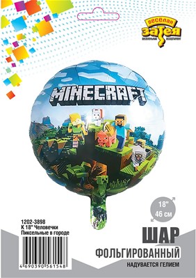 Шар фольга с рисунком 18''ВЗ круг Человечки Пиксельные в городе
