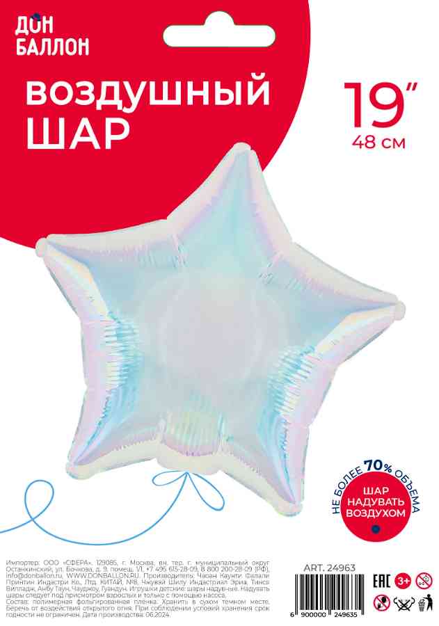 Воздушный шар из полимерной пленки, надувается только воздухом, идеально подходит для детских игр и забав.